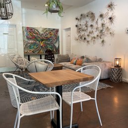 I recently visited Juicy Ladies in Woodland Hills and had a pleasant experience overall. Despite the slow service due to it being busy, Elena's friendly demeanor made the wait more bearable. I ordered a protein smoothie, a Super Sexy Smoothie, and a Hydration Juice--all of which were refreshing and well-prepared. The interior of the cafe boasts a calm, boho vibe with comfy seating, and the outdoor area offers a similarly relaxed ambiance with comfortable seating options. It's a great spot to unwind and enjoy a tasty, health-focused drink. While I was pleased with my experience, I felt the prices are quite high... I spent $50 for a juice and 2 smoothies, which I did not feel was a great value.